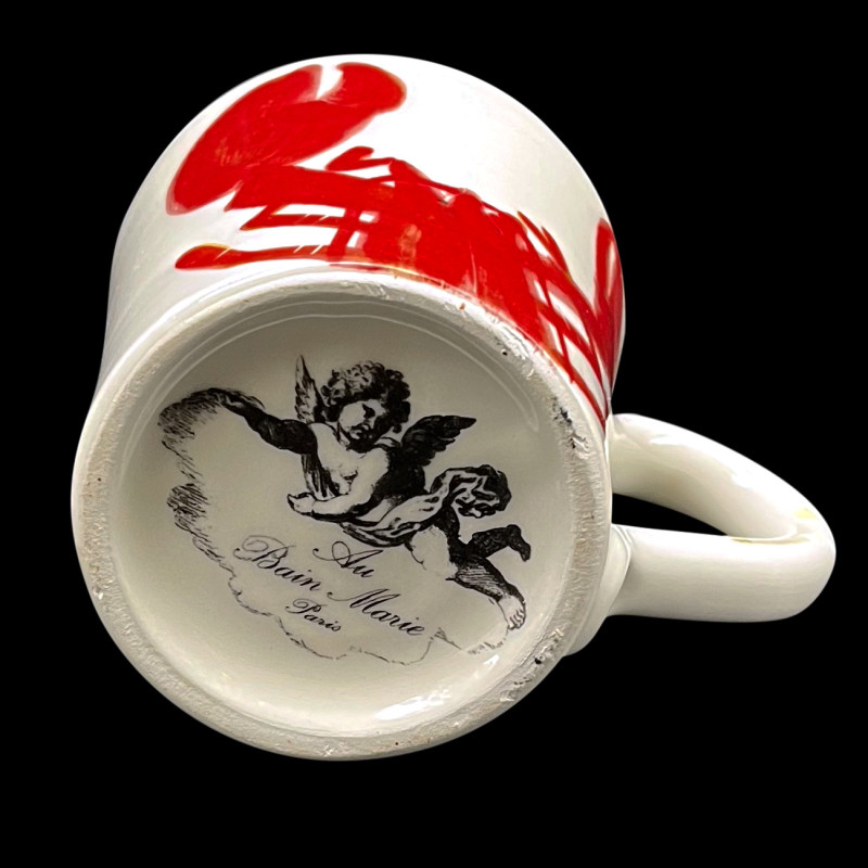 Large hand-painted earthenware mug decorated with a French breton lobster design.