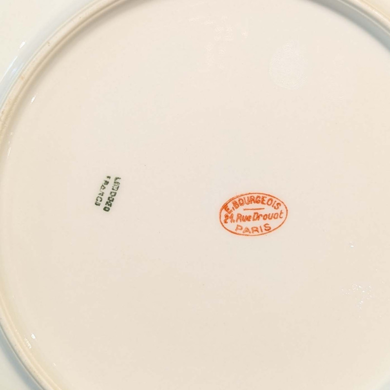A 14-pieces Limoges porcelain service, made around 1890. It depicts pairs of wild birds standing out against a delicate blue background scattered with grasses and cherry blossoms. The scalloped edges of the pieces are enhanced with a wide band of beaded gold trim.