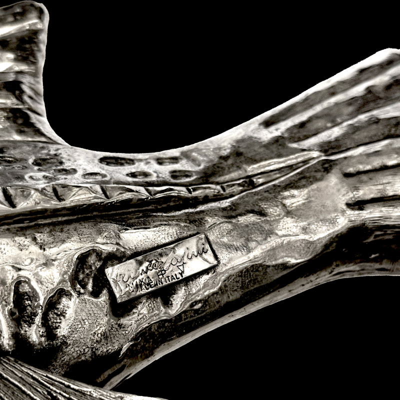 Silver-plated and partially gilt caviar holder by Franco Lapini. Crafted in Florence around 1980, it is modelled as a sturgeon with a removable lid. An iconic piece of Italian tableware, perfect for collectors of design and luxury.