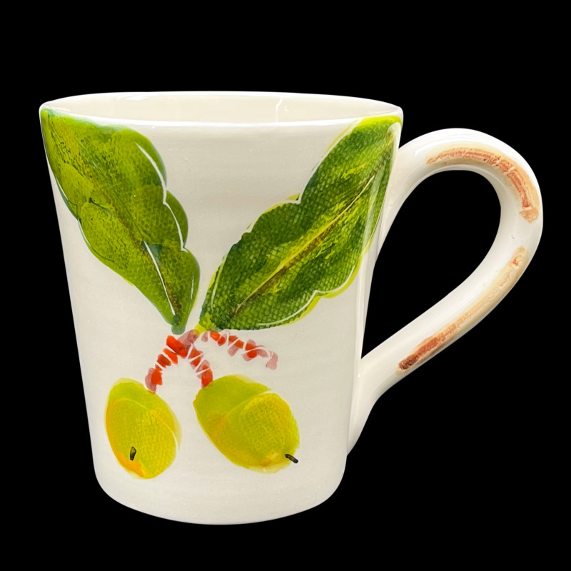 Grande tasse Mug en faïence peinte à la main et décor de feuille de chêne et gland.
